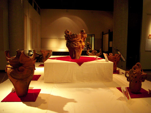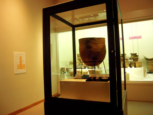 八木さんが作った縄文土器と前橋で出土された土器が展示されています。