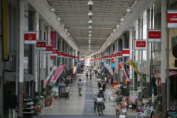 そして馬場川沿いの通りは商業施設が並んでいます。